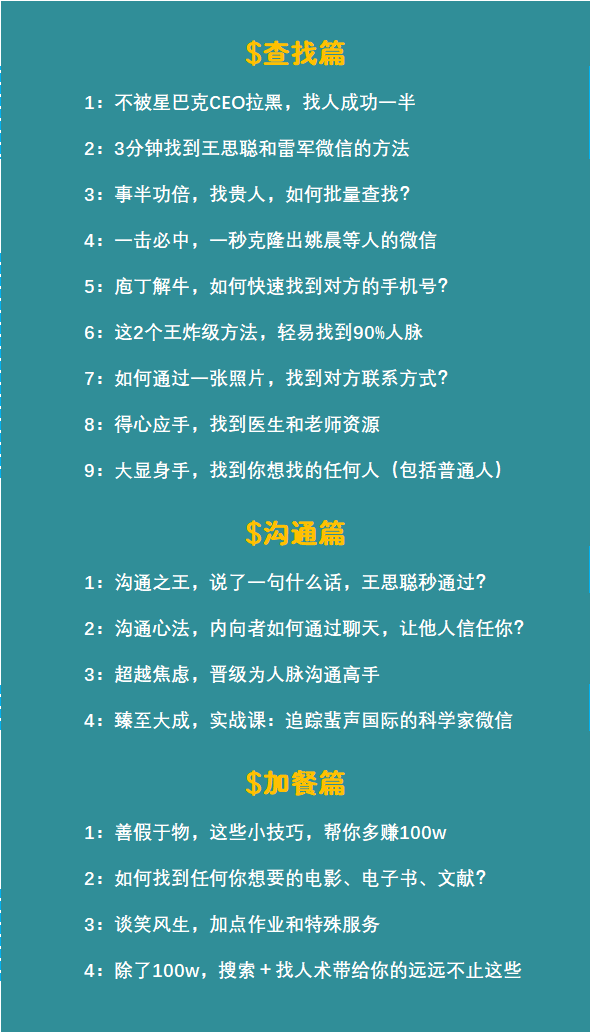 所以,我花了半年,升级了以前的互联网找人方法,做了一门在线课程《如何快速找到你想找的任何人——升级版》,仅需199