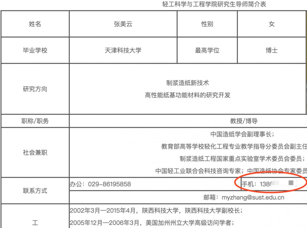 本着对信息的敏感度,我直接打开了陕西科技大学的官网,找到了张美云教授联系方式。