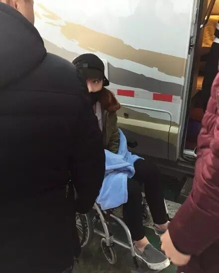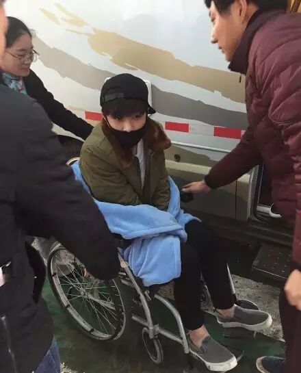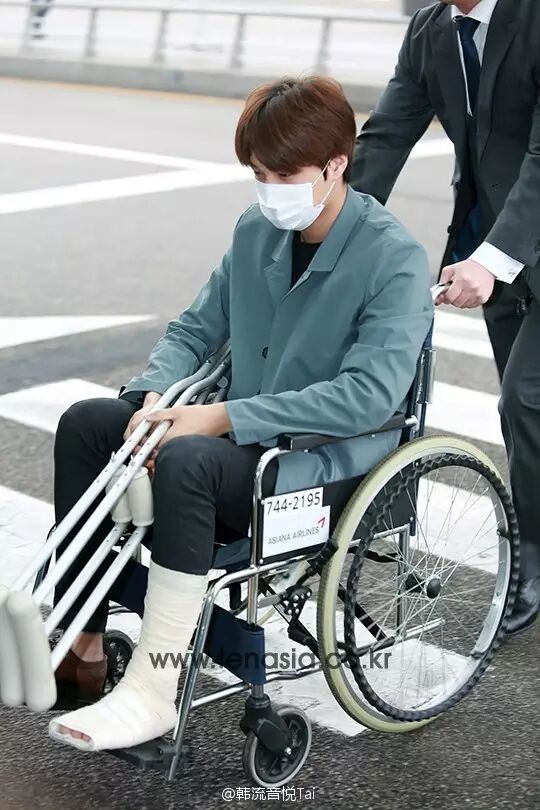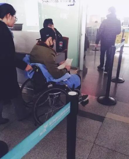 之后的海外行程,仁川机场出境时仁妹坐在轮椅上!