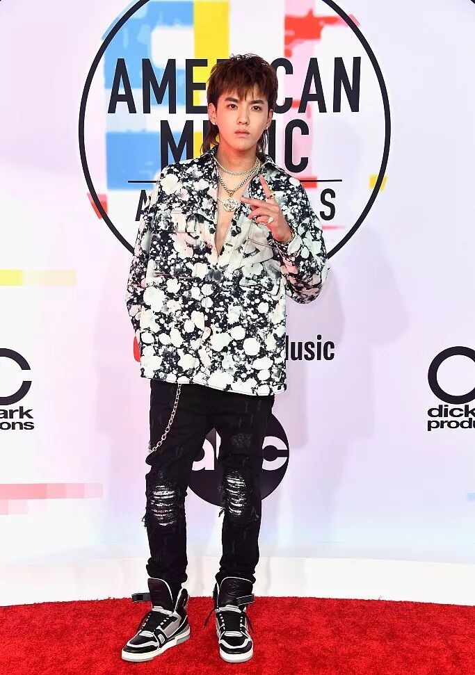 除了一众欧美歌手外,还有我们的吴亦凡同学作为华人唯一受邀嘉宾登上红毯,头顶鲟鱼发型的凡凡实力演绎什么叫有颜任性。