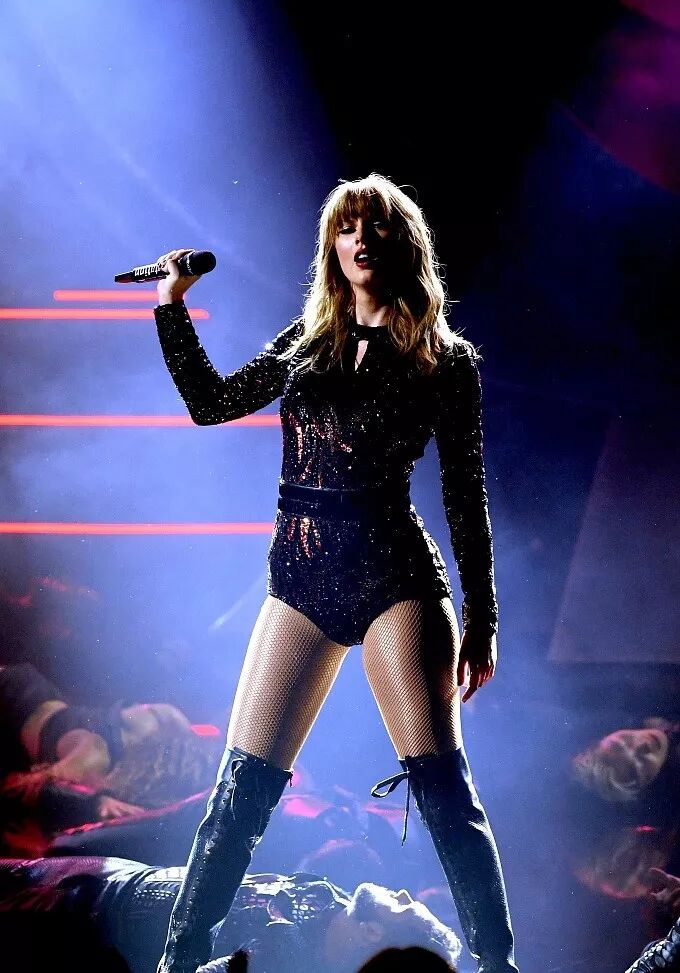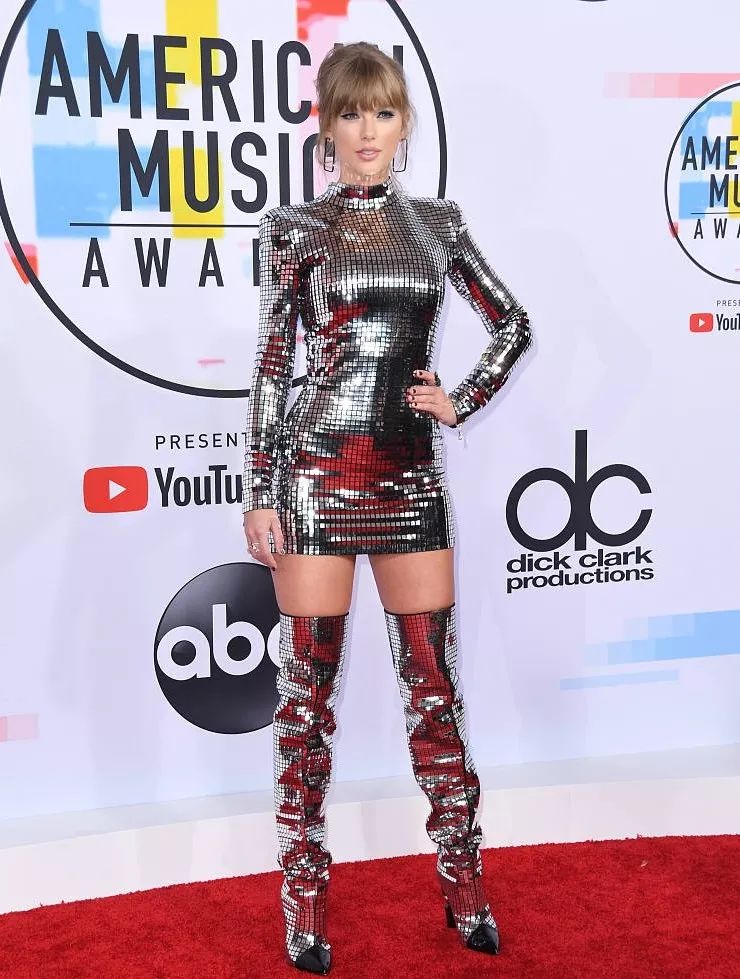 霉霉Taylor Swift身披银色战袍,化身未来女战士率先登场,180+的身高配上高跟长靴傲视全场,AMA的珠穆朗玛就是你!