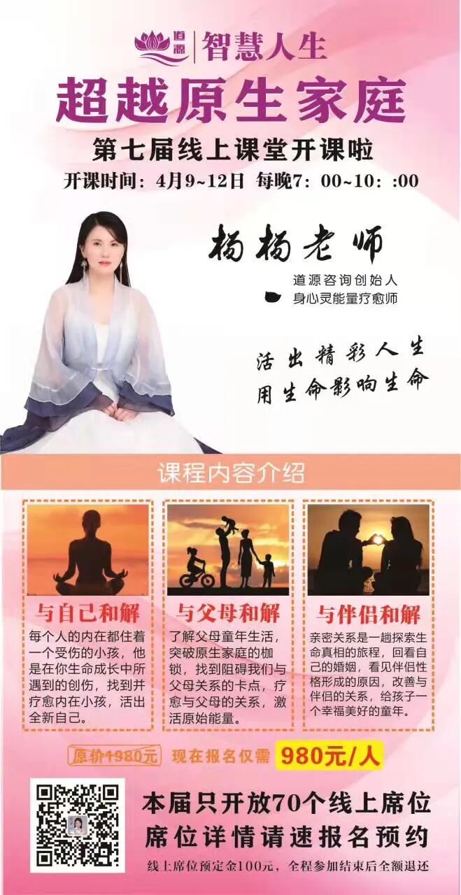 你也想改掉自己对抗多年的“命运”; 你也想与伴侣和谐相处,回归爱与被爱的本源; 你也想冲破原生家庭的束缚,让孩子快乐而积极地成长; 你也想打通你隐藏的财富能量,终生收获喜悦与富足;
