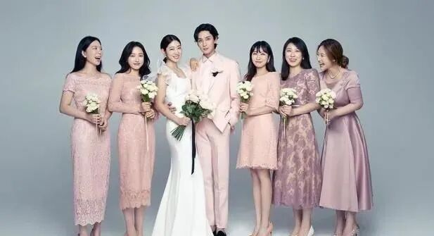 领口周边利用蕾丝进行装饰,也起到了强化风格的作用。一定程度上可以弱化年龄,彰显女性的俏皮感。这时候朴信惠的发型,也由端庄大气的盘发变成了更为随性自然的扎发,利落清爽之余,也显得秀气不少。尽管伴娘服都是粉嫩的桃红色,但是她依旧没有被比下去,气质不错。