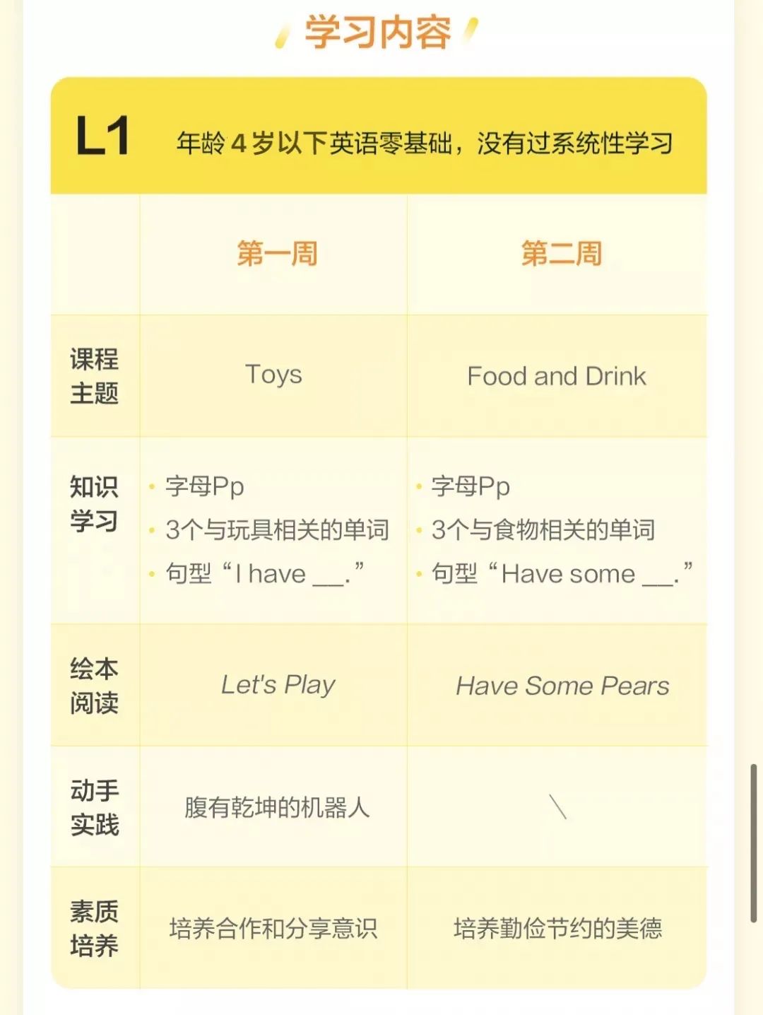你看L1,针对4岁以下的孩子,没有过系统性学习。