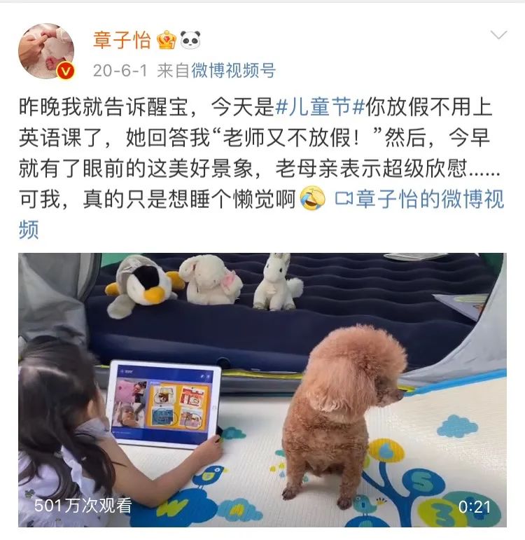 前两天,章子怡又在微博晒出了“1岁半的儿子在努力往沙发上爬”的视频。
