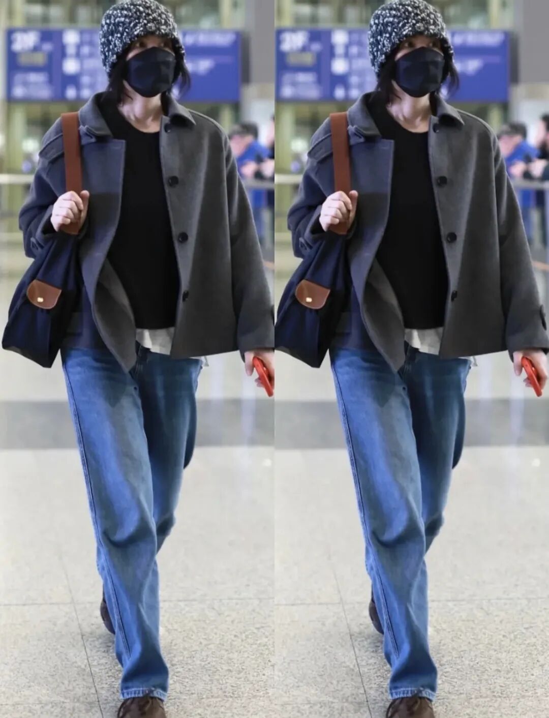 之前宋佳这套驼色短款大衣+卫衣也很种草。