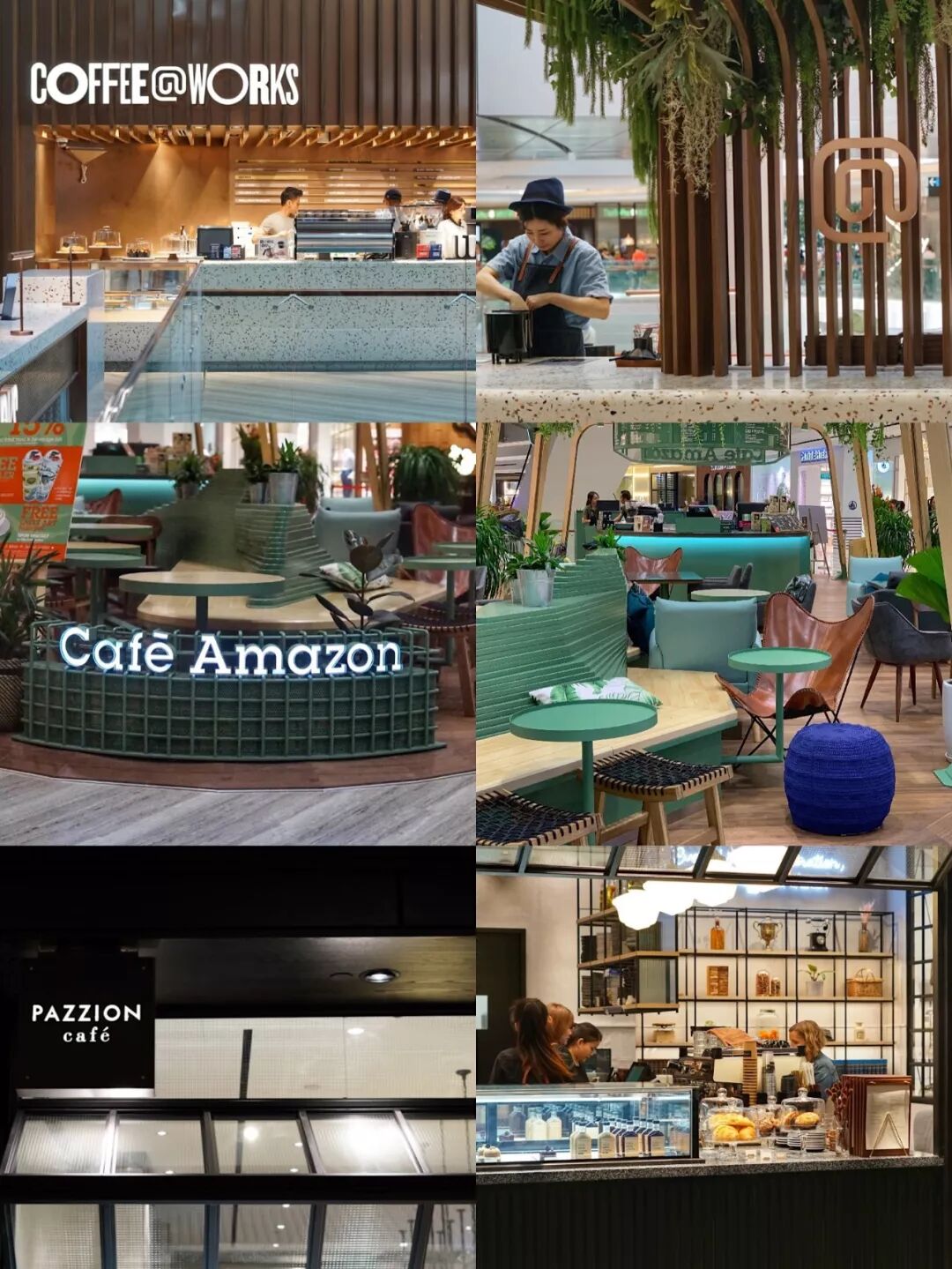 和Paris Baguette同公司的Coffee@Works以及泰国咖啡连锁品牌Cafe Amazon,都是新加坡的第一家店。新加坡国民鞋品牌PAZZION也在地下1层开了一间以黑色调为主的Cafe。
