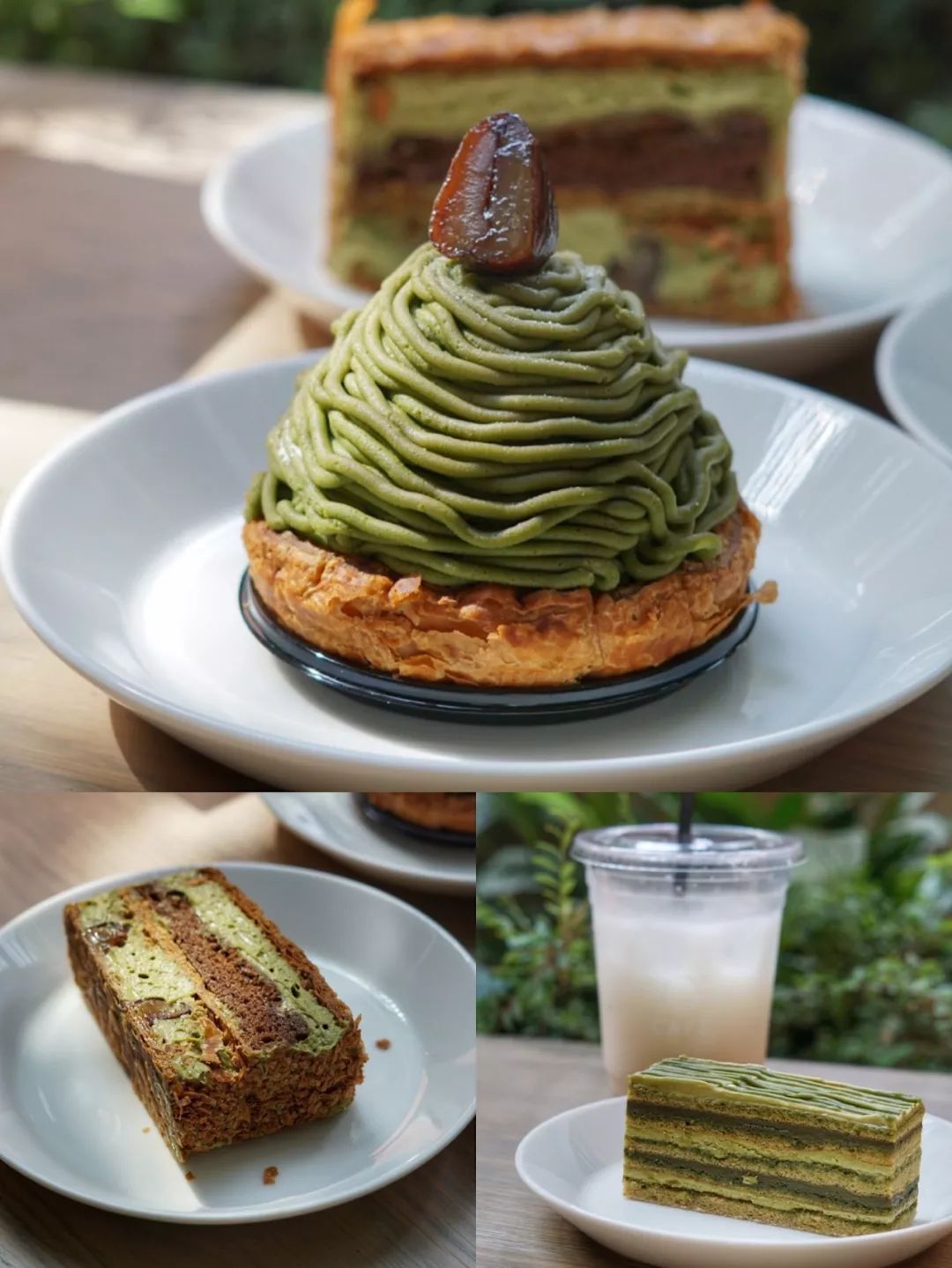 这里的抹茶甜品微苦又不会太甜,我们把蒙布朗、拿破仑和歌剧院蛋糕几款最经典的尝了个遍,每一款都不踩雷。坐在最里面朝着瀑布的位置,阳光洒在身上,看着绿植和瀑布,特别惬意。