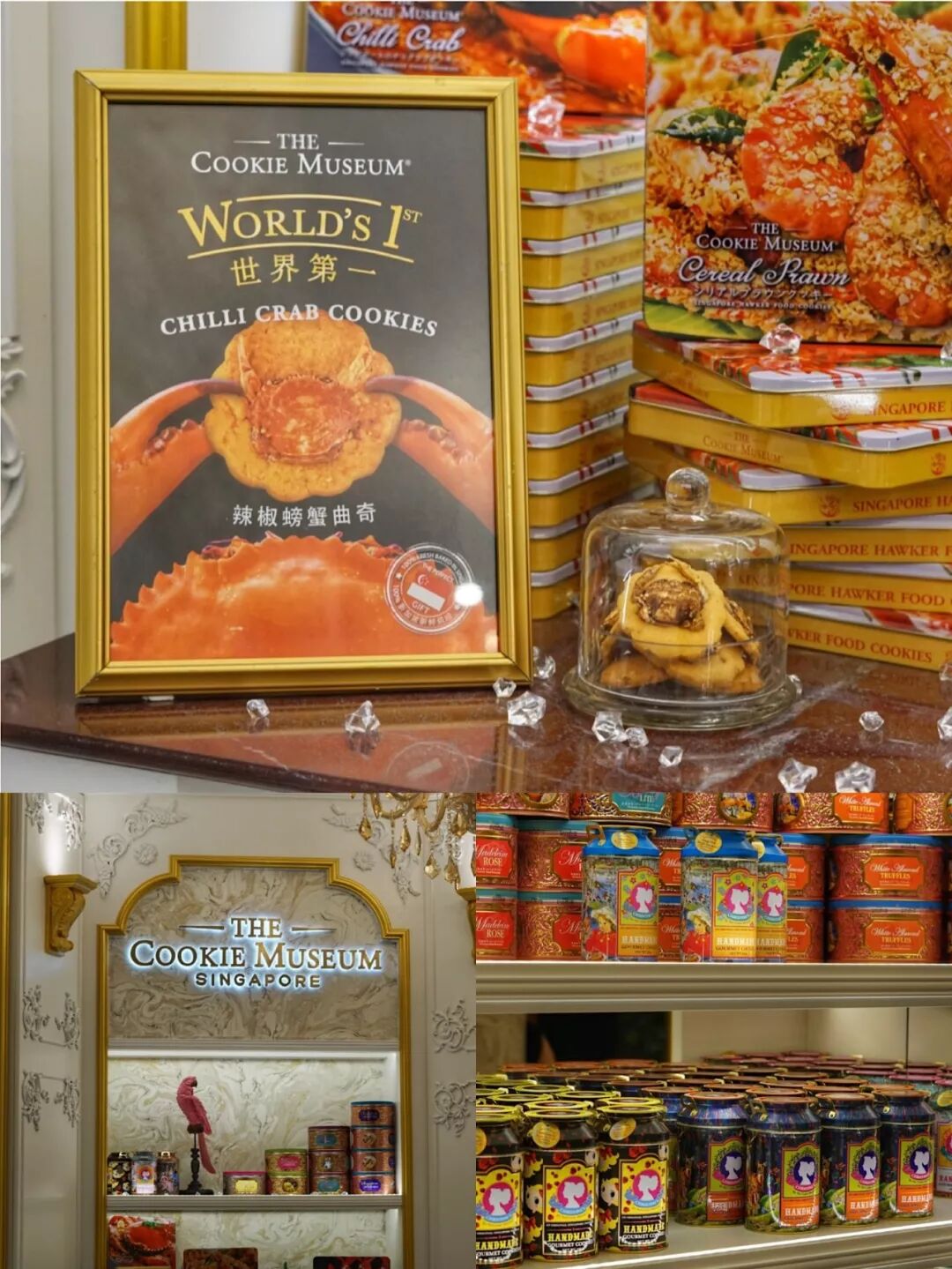 带手信回家,就是一定要带有新加坡风味的。这家The Cookie Museum的曲奇饼干口味都代新加坡风格:辣椒螃蟹、麦片虾、班兰、新加坡司令、沙爹和榴莲味等。其中辣椒螃蟹和麦片虾里面用了真的小螃蟹和樱花虾,有被惊艳到。