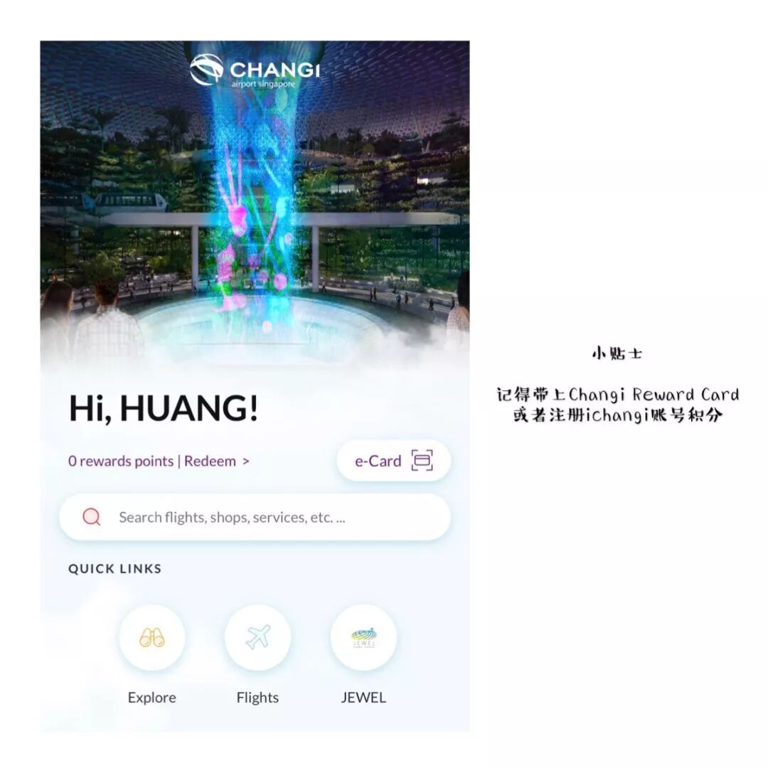 大家记得记得带上Changi Reward Card或者是下载 ichangi APP,在星耀樟宜的消费都能进行积分,以后可以兑换voucher。这两次过来我都忘记带卡了,懊恼ing。