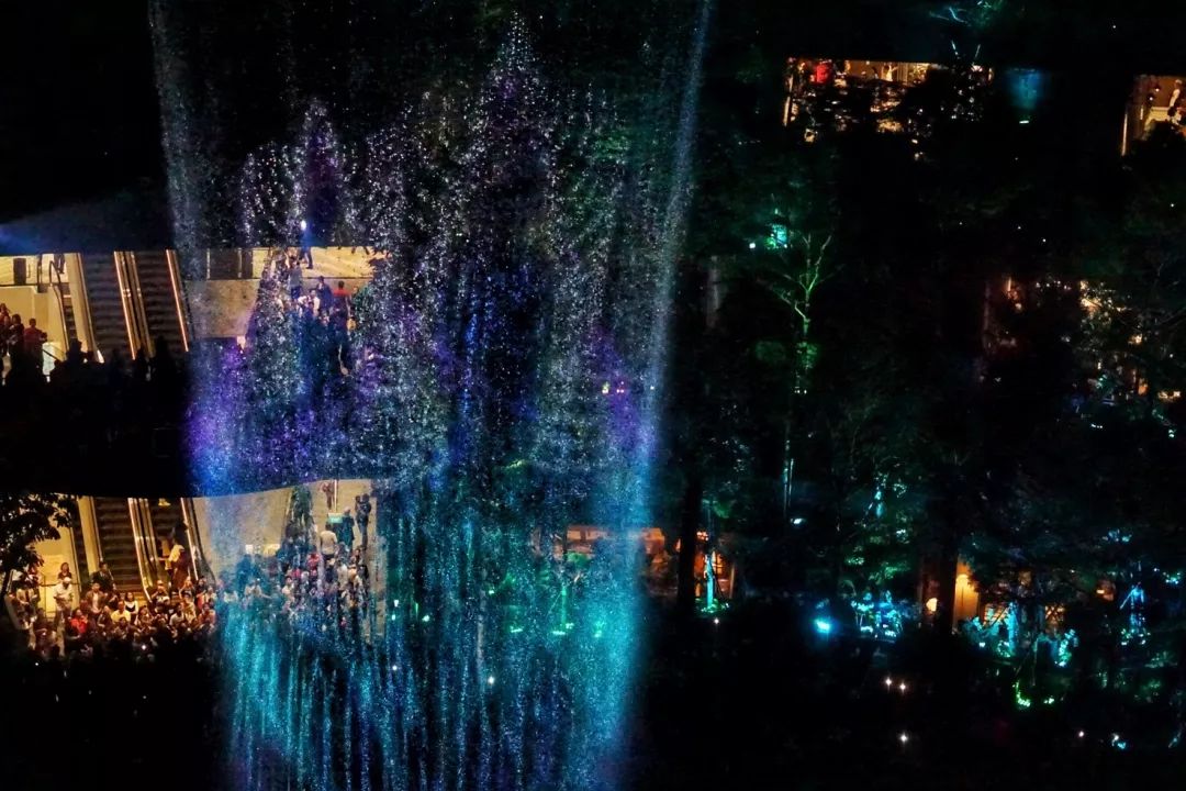 晚上七点半的时候看到了灯光秀,感觉还是挺震撼的,但是灯光颜色极其诡异,让整个Forest Valley显得有点阴森。站在高层拍视频的时候注意拿稳手机,说不定一个不小心手机就会被撞飞。