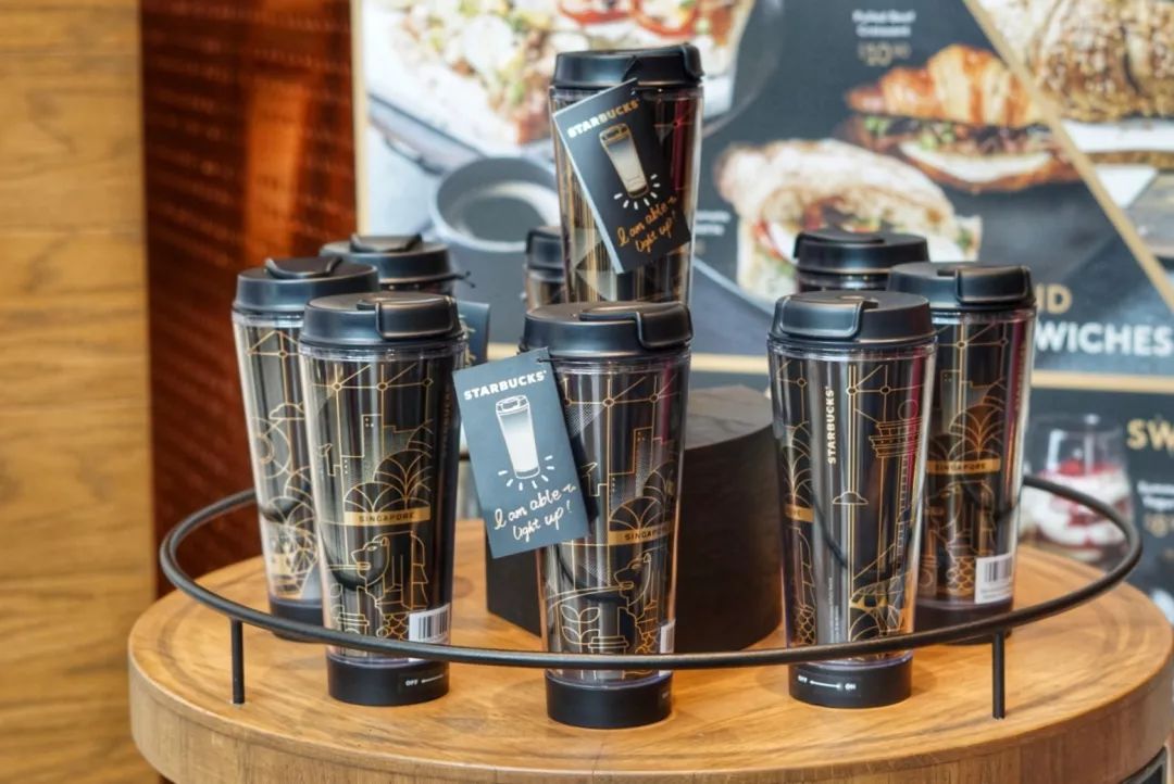 还有一楼通往二楼的那幅耗时两个月的全手绘美人鱼壁画,必须亲眼看才能感受到震撼。如果你喜欢收集星巴克纪念款,那不能错过这款黑金樟宜机场杯,感觉是新加坡纪念款里面最好看的。