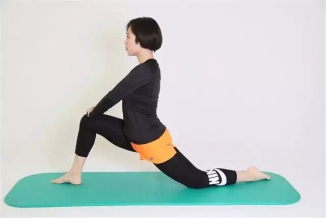 首先是腰肌的牵引:单膝跪地,双手扶髋,腹部内收上提,同时胸腔上提,保证髋部下沉