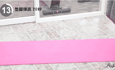 两脚并拢,弹跳20秒。为了不那么单调,也可以左右边来回跳。