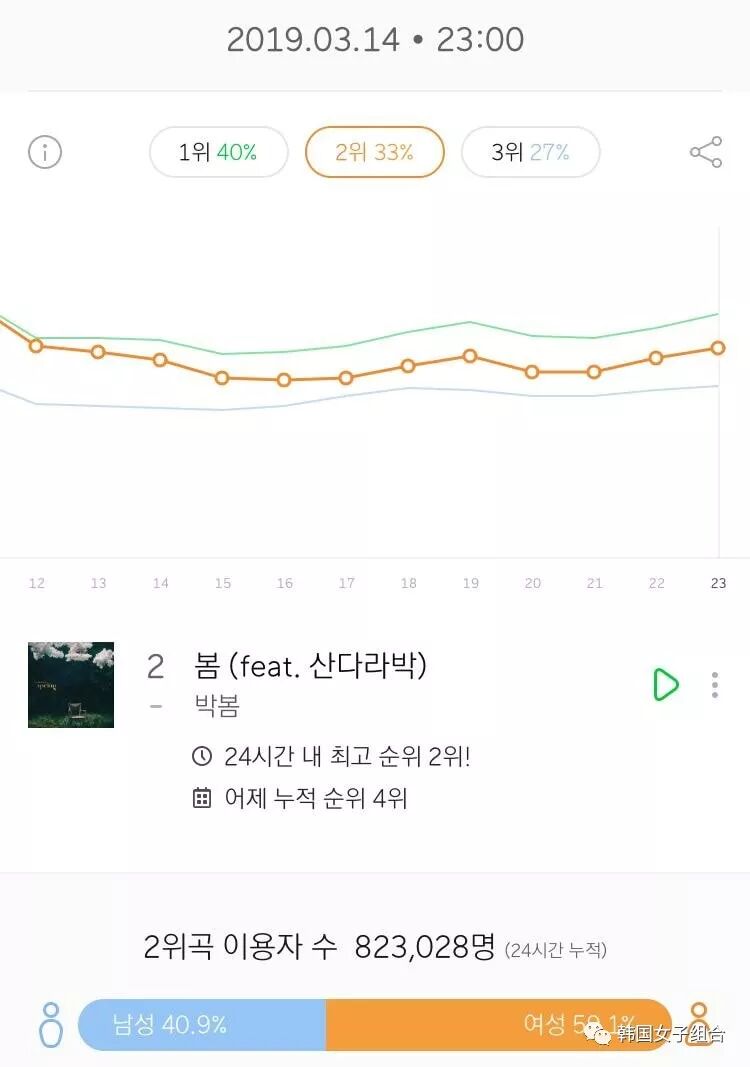 Melon 首日收听指数最终80万,男性收听指数一直在上升最后达到40%