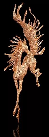 钟华获邀参与的2014巴黎马年生肖珠宝设计发布暨展览,作为被邀的十位中国优秀艺术设计师之一,她所设计的作品"奔马-Pegasus"胸针完全体现了其独一无二的艺术底蕴及创造力。