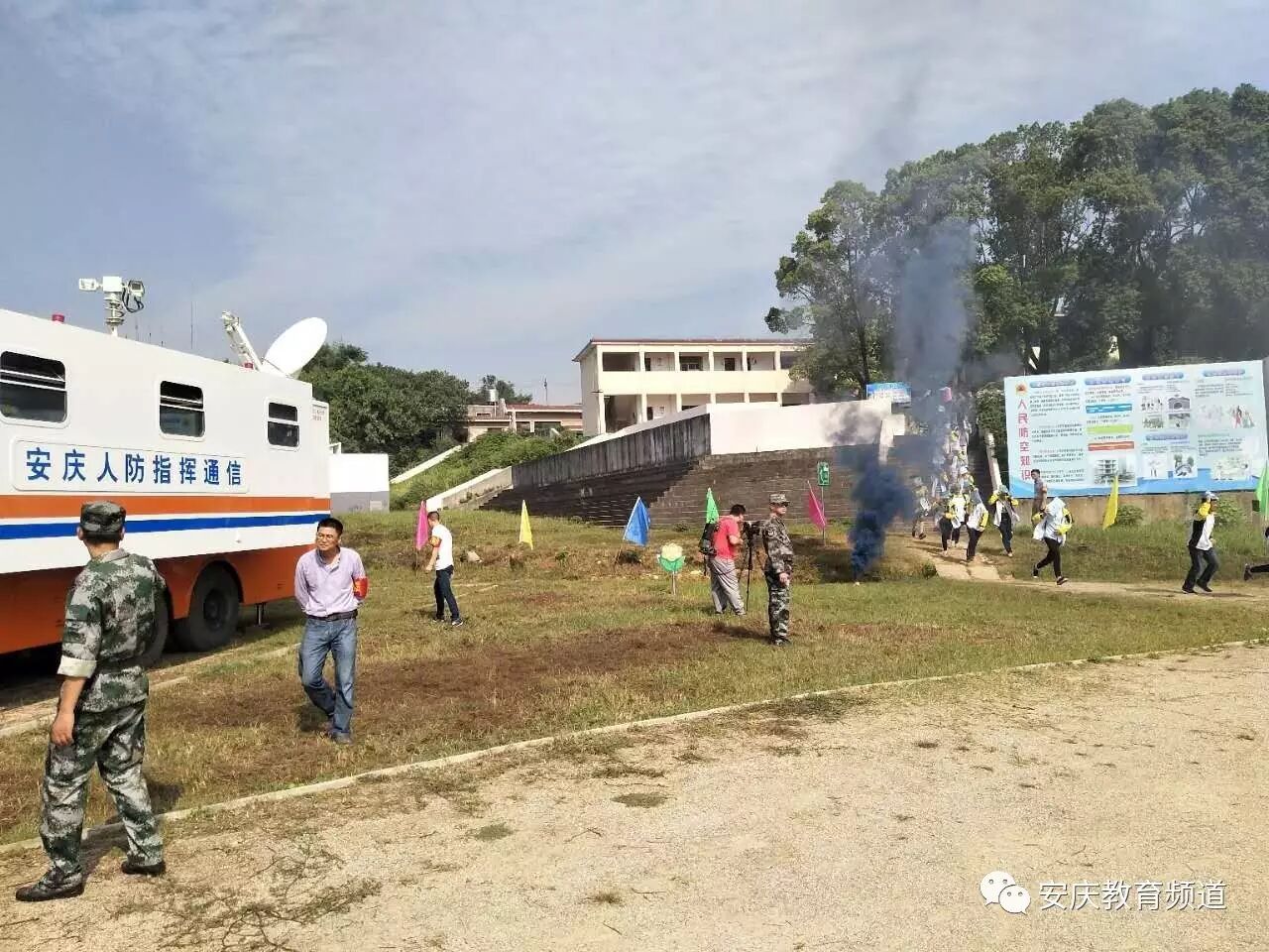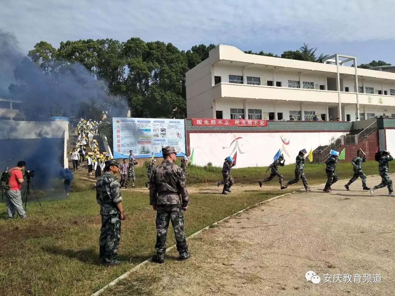 今早9点18分,安庆市老峰中学组织了防空防灾疏散演练活动。活动在安庆市人防办指导和协助下进行。活动重在培养学生爱国主义精神,牢记历史,以振兴中华为己任,培养学生担当意识。