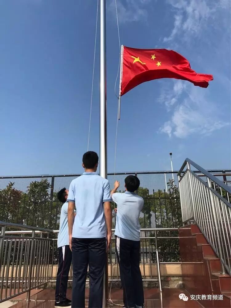 安庆市外国语学校,9月18日上午,举行了隆重的升旗仪式和纪念活动,初中、高中部全体师生共同参加!