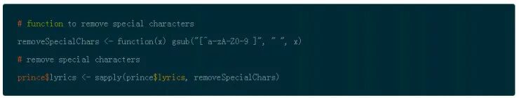 你还将注意到特殊字符弄脏了文本。你可以用 gsub() 函数和简单的正则化表达式来去除它们。 请注意,在这步骤之前,扩充收缩是非常重要的!