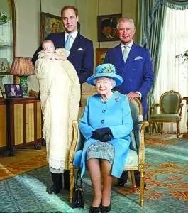 为了庆祝英国女王伊丽莎白二世90岁生日,英国皇家邮政发布了一张具有历史意义的照片——英国皇室家族四世同堂。