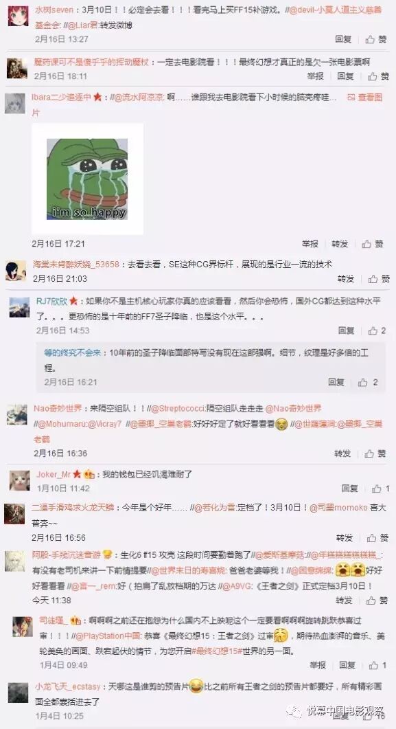 “我本来在看到预告片时就充满期待,没想到看完后更是超出我的预期,非常感动。就算不玩游戏的人也能看得开心。”