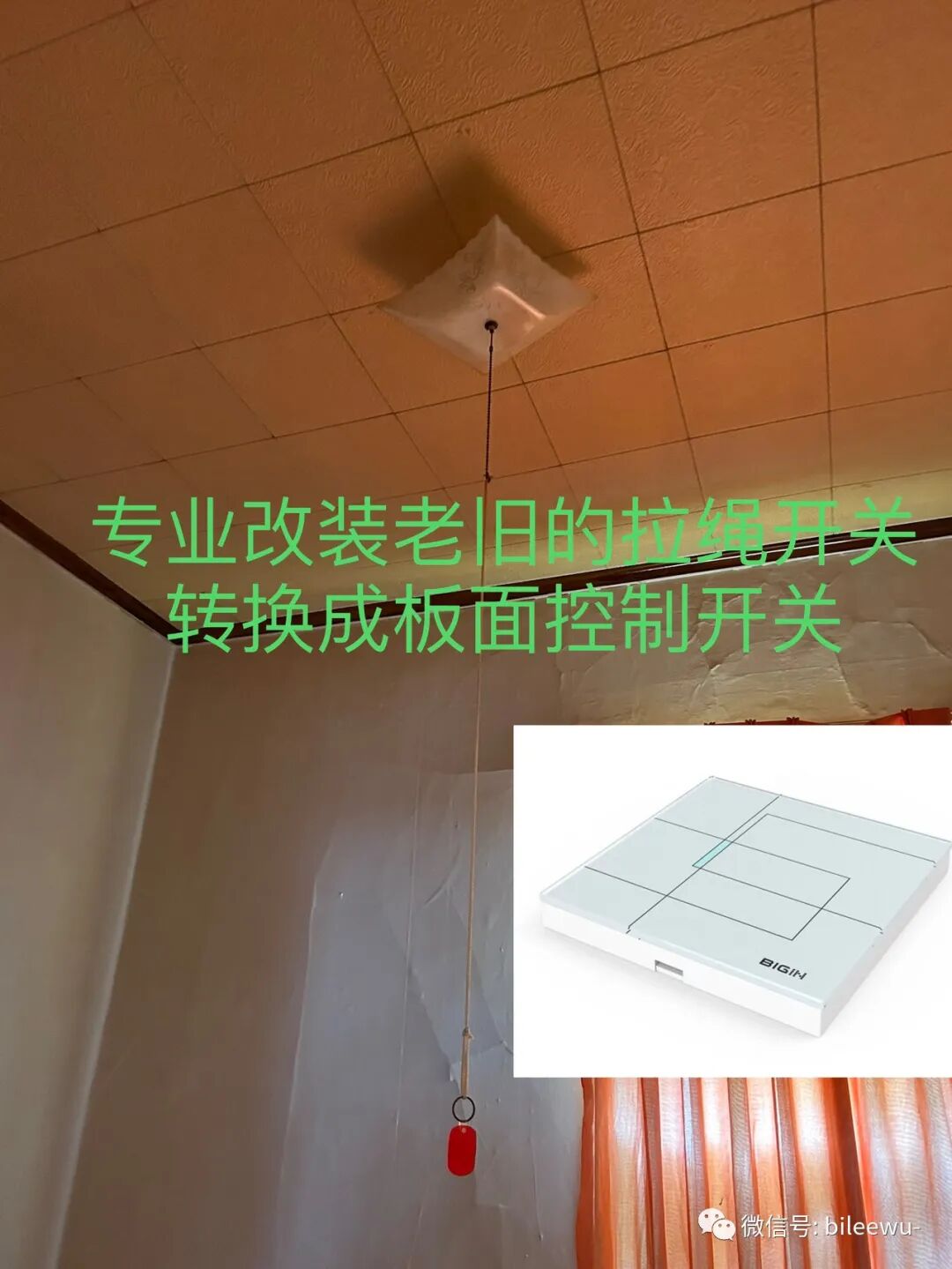 新设专业改装拉绳开关灯!免布线,开关位置随你定,免布线来回开关、多个开关。拉绳开灯既容易断,开灯又麻烦!有意请联系:芝加哥(872)706-5352如果没接电话,请短信预约。