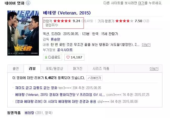 影片在韩国最大门户网站Naver上,评分高达8.37。