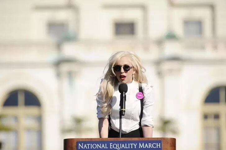 她是打从心里爱自己粉丝的 她作为LGBT一直以来的拥护者 亲自参与LGBT游行 在白宫前公开演讲 怒怼奥巴马 强制要求他为LGBT群体做出改变等等 名副其实的gay icon 深受LGBT群体的喜爱 这是她一直追求的自由平等观念
