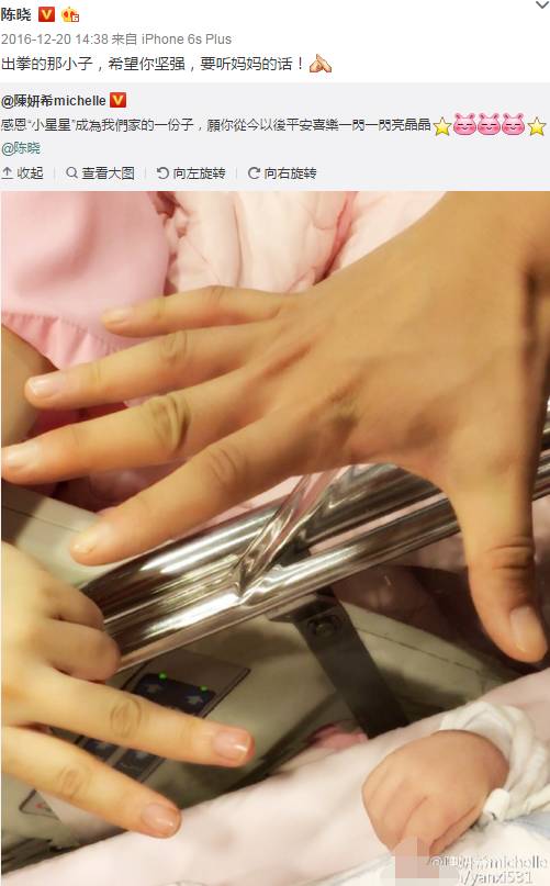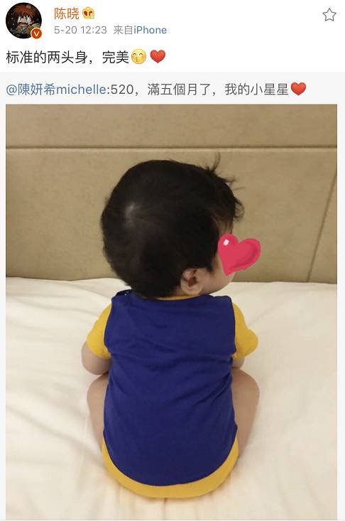 宝妈陈妍希选择在520这个日子,晒出小星星的照片。陈晓,你这么黑儿子,他知道吗?↓