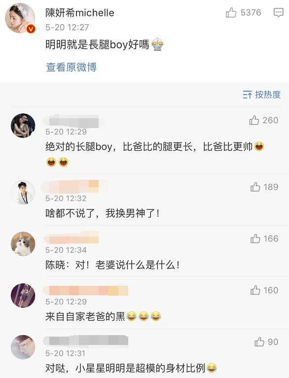 这样的互怼,不是第一次看到了……结婚之后的陈晓更博频率降低了很多,不过隔几条就能看到狗粮狂撒↓