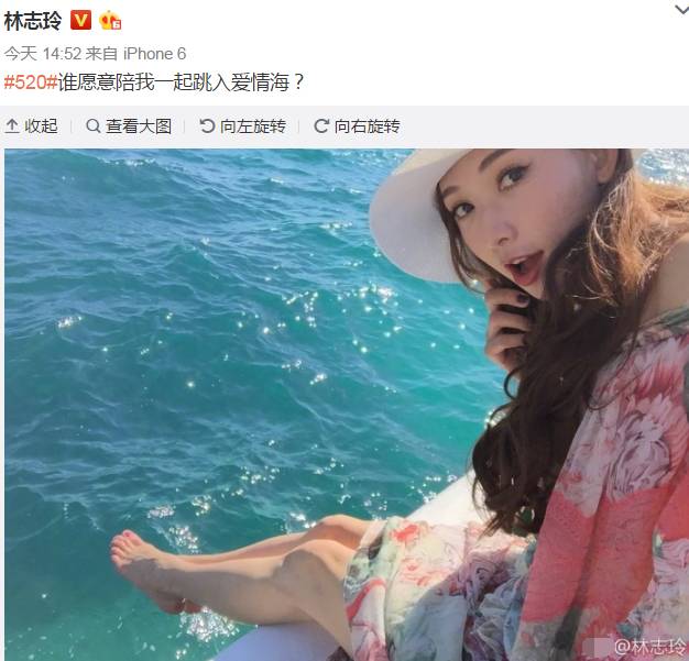 林志玲醉翁之意不在酒,发问“谁愿意陪我一起跳入爱情海?”↓