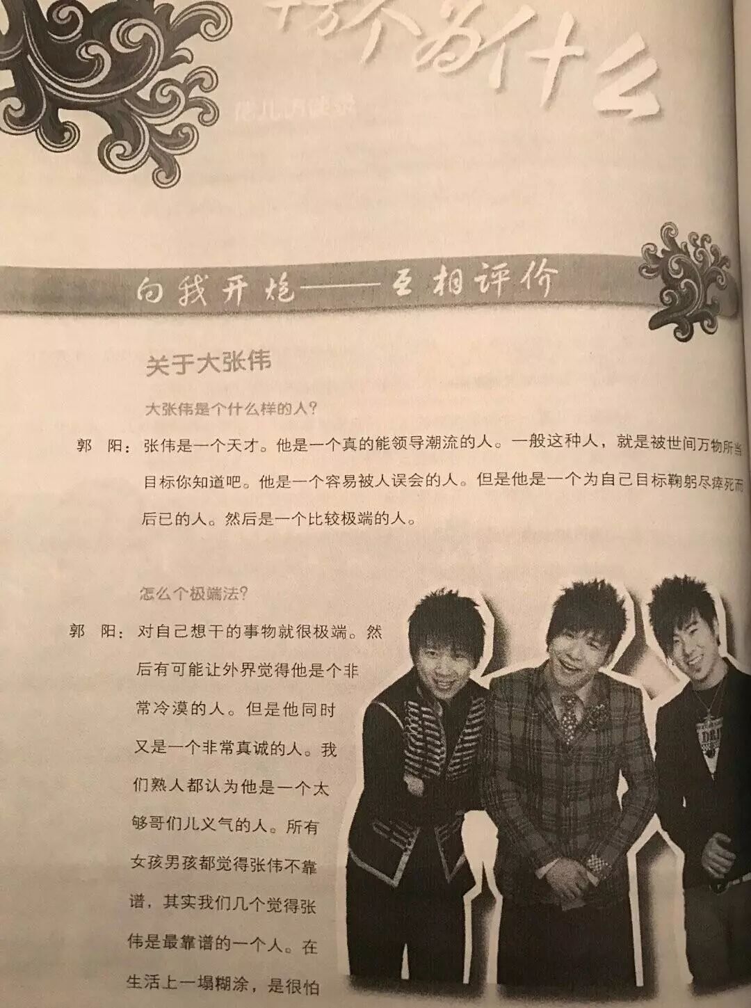 而大张伟说了真相,他们两都不想重复自己,躲在以前的成绩上吃老本,所以解散是当下最好的求解。