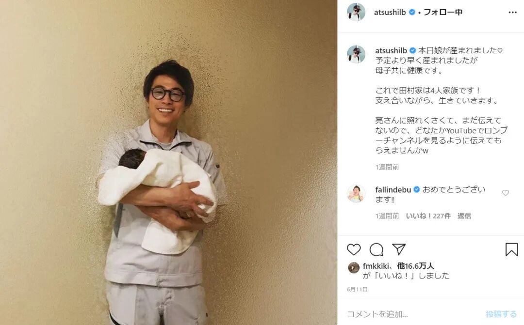 最近田村淳喜提二娃,网友恭喜之余,纷纷感慨:
