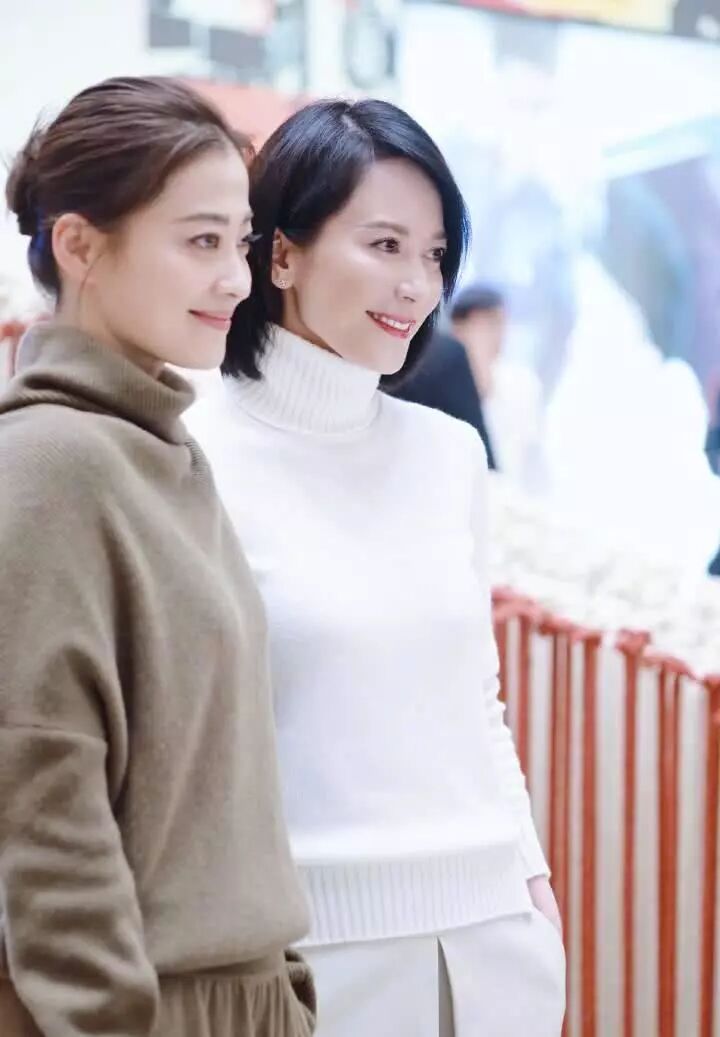 近日看到了一组俞飞鸿和梅婷同台的照片,哇塞~我是打自心里的佩服,怎么看都是不像两个40多岁的人,特别是俞飞鸿都47岁快50岁的人了,看上去还是那么的年轻,穿着同款毛衣和梅婷站在一起完全就像是亲姐妹一般,两个气质都是非常出众,不相上下。