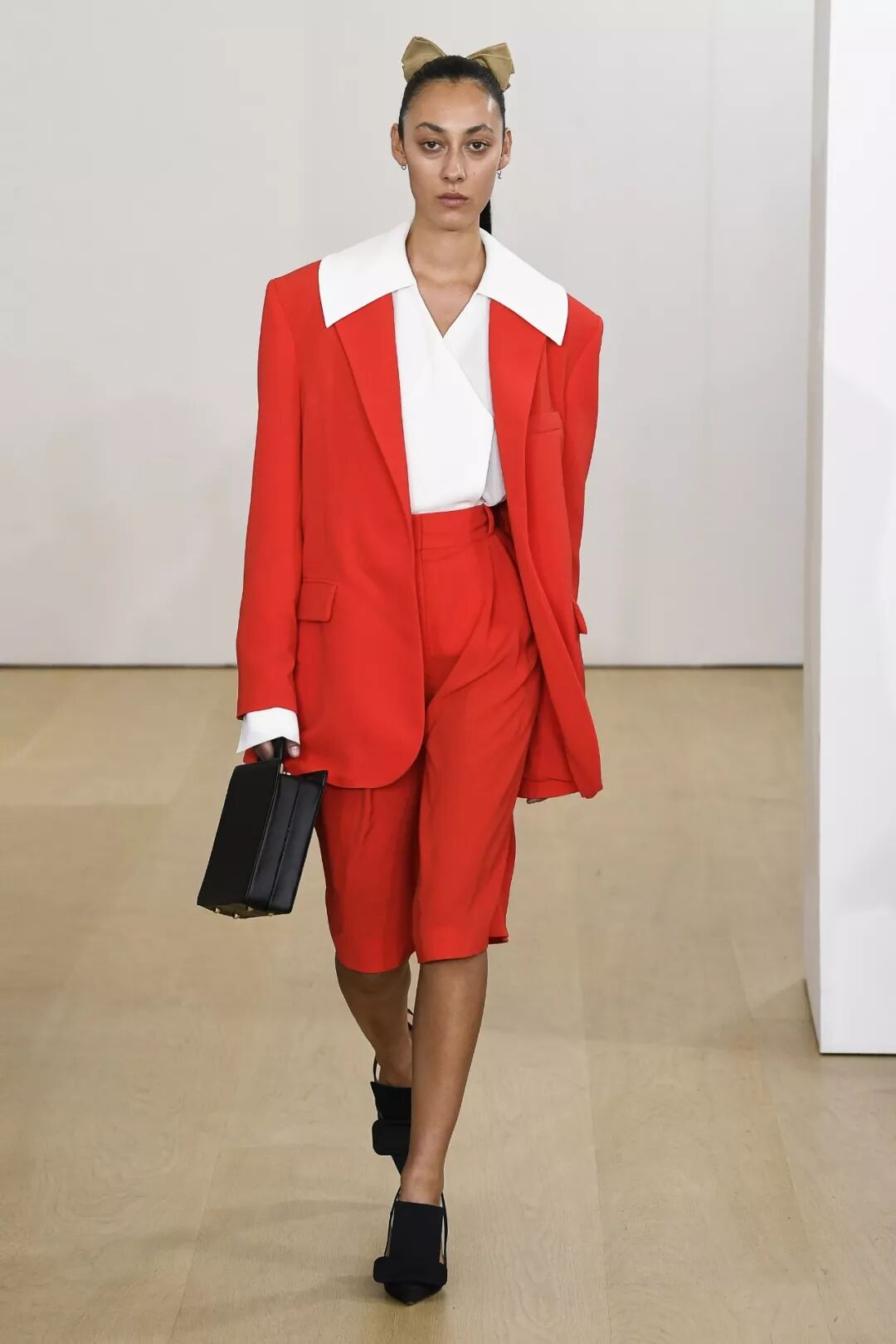 今年的秀场上,亮色西装也是出没T台的重要元素之一。↓Emilia Wickstead 2019春夏秀场的这套不管是颜色还是款式都很值得入手呢~