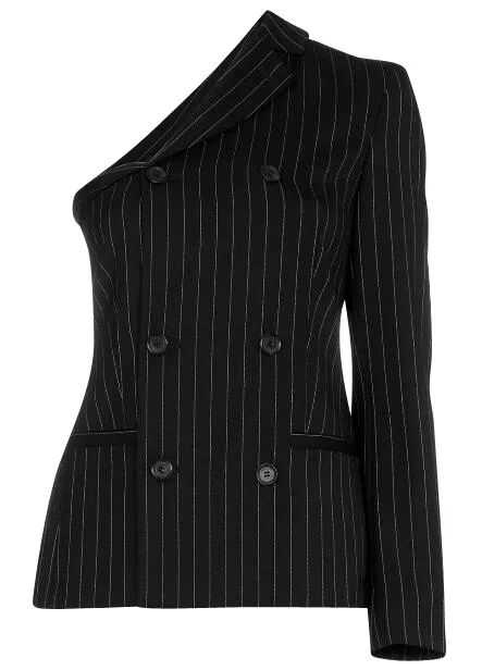 蔡依林这件露肩双排扣西装搭配皮裤和一字带高跟鞋酷感十足。