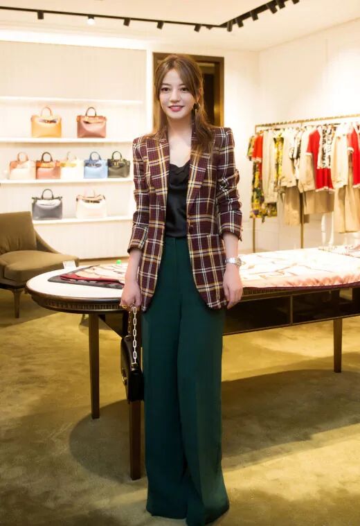 赵薇老板的这件收腰格纹西装搭配阔腿裤超级显瘦了。西装来自Burberry约合 ¥17717.