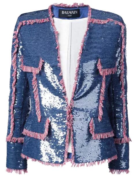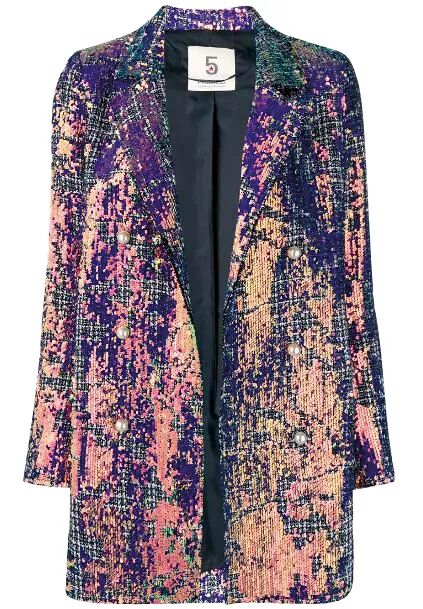 橱柜里永远不能缺少一两件闪亮的单品。亮片或金属色都能让你不费力地惊艳全场,刷满存在感。↓捷克隽逸身穿亮色西装内搭简单的牛仔短裤和T恤,就算不带王冠也够女王了。