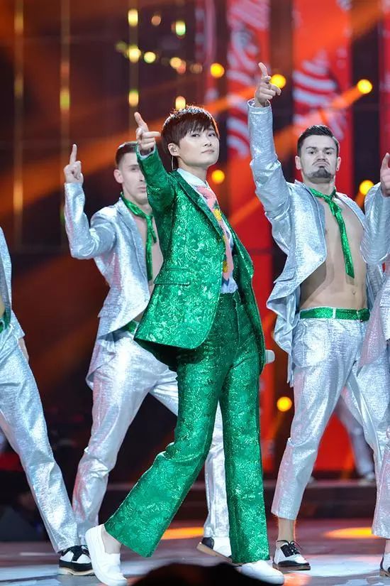 说起亮亮的西装造型,李宇春这套绿色亮面西装造型堪称经典。这套西装是Gucci 2016春夏系列。