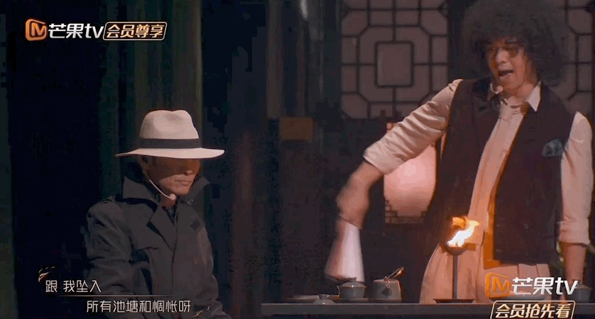 其次就是表演结束时,杜德伟换上了《第八号当铺》的造型,跳到人们眼前,说出了经典台词,现场观众也随之兴奋尖叫。