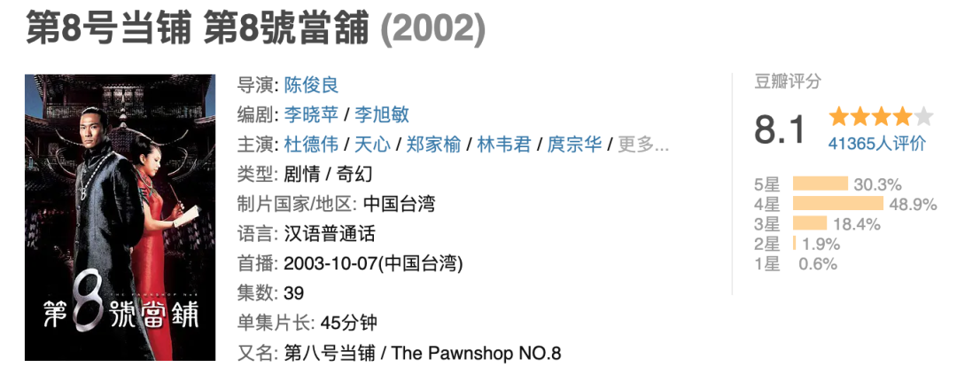 ▲《第八号当铺》是2002年的台剧,主演是杜德伟和天心,演男二号的是李志希,当年这部剧虽然不及风头无两的台湾偶像剧,但也是人气很高,是很多人的童年记忆,天心的故事,我们过几天也会写。
