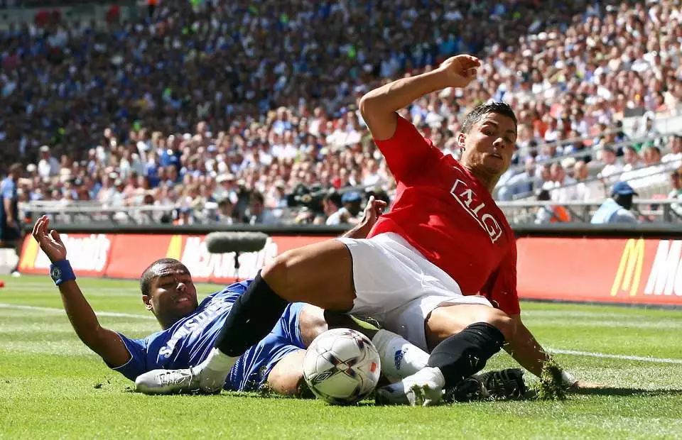阿科尔防死C罗的代表作有不少,2006-07赛季英超,切尔西客场1-1战平曼联,踢左后卫的科尔就让右边锋C罗无可奈何: