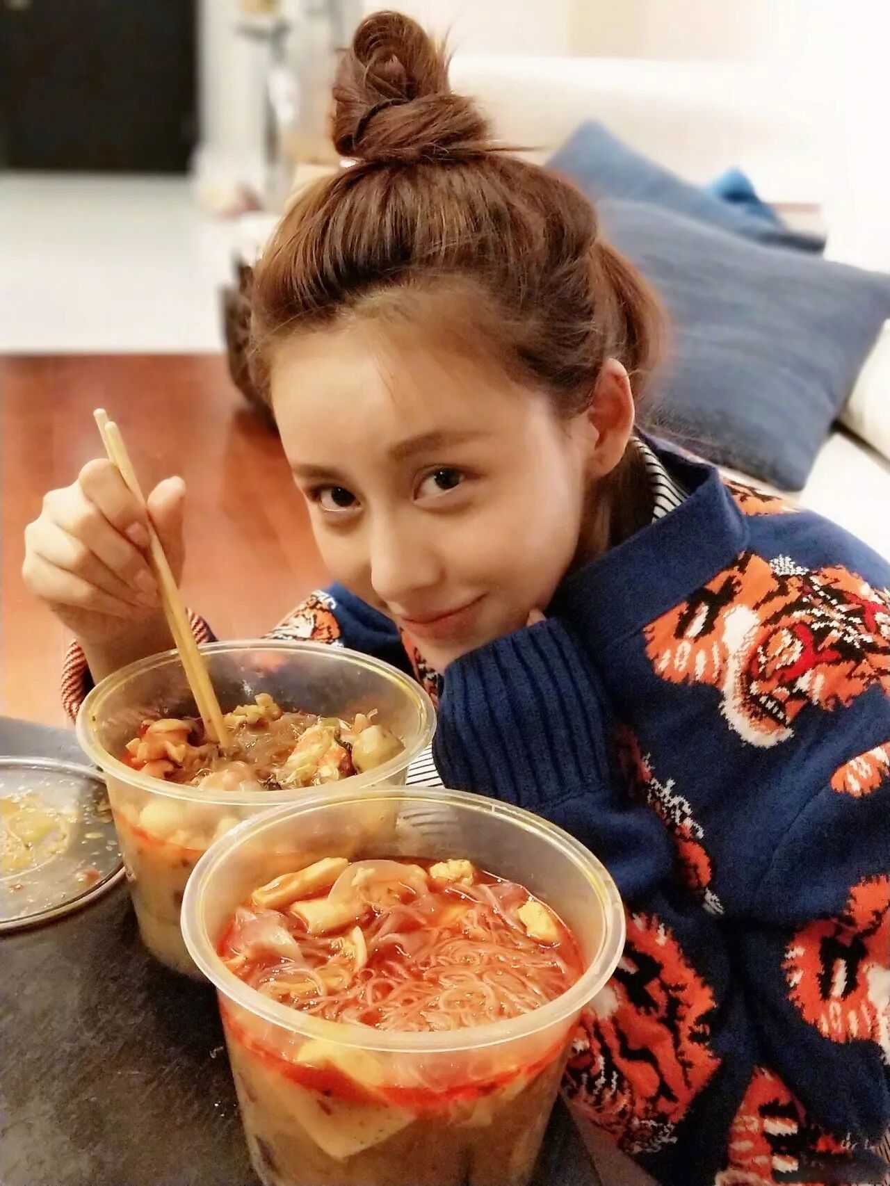 A:喝水,吃很多水果,葡萄、提子、樱桃啊什么的。(护肤?)每天做2个补水面膜,化妆前一个,卸妆后一个;我每天吃鲨鱼丸、胶原蛋白这些,一堆。