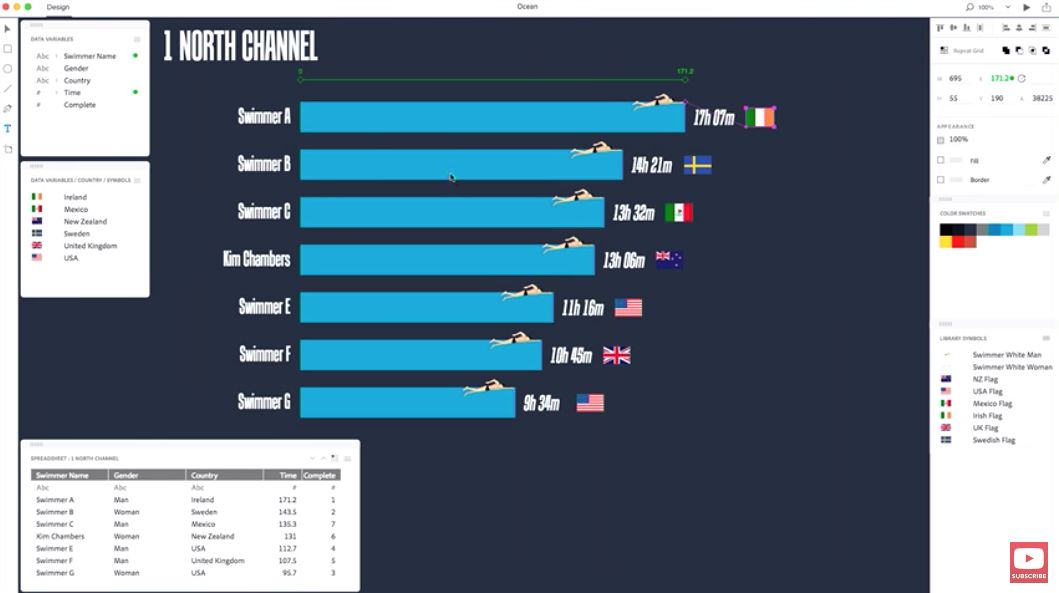 Flourish是一个在线图表工具,无需编码,图表多样,包含地图。它可以直接导入数据,也支持Google Sheets在线文档的识别。(划重点:可以导出svg);数据可以分列控制,对多维度数据很友好。