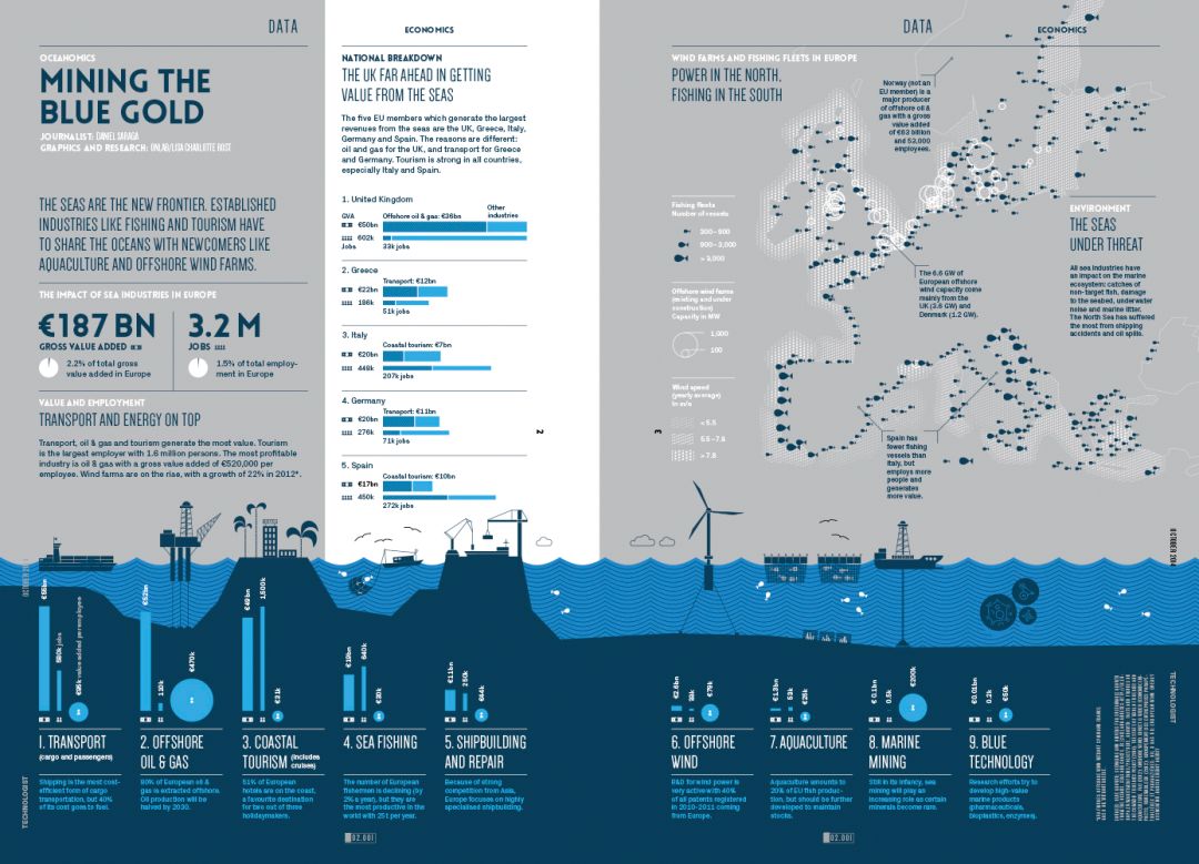 图片来源:Lisa Charlotte Rost个人网站,人们是如何利用海岸线资源的 Mining Blue Gold: Infographic for the magazine Technologist