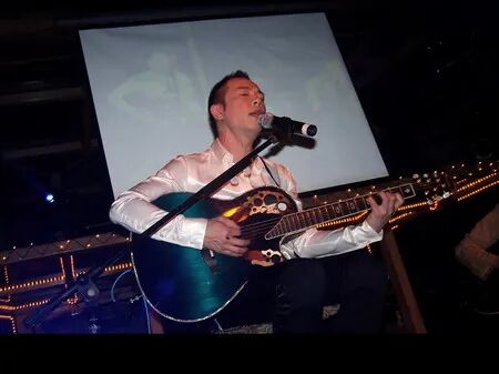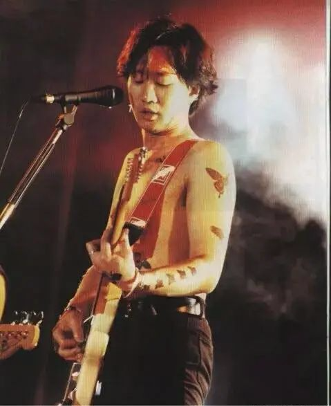 那个时候他还留着长头发,头也低下,脸被头发挡得严严实实的,除了弹吉他,动都不动。