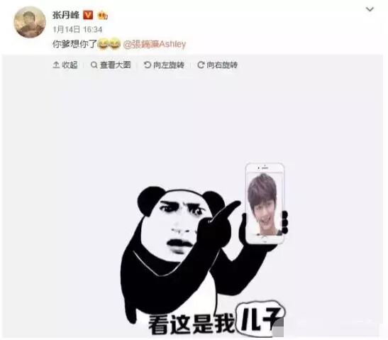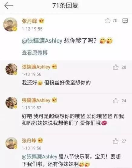 而张丹峰虽然是张镐濂的继父,但是洪欣还有儿子都是很爱张丹峰的,不然也不会把姓改成了张。可以看出洪欣可是对张丹峰一片真心。父子两人也时常在微博上互动。