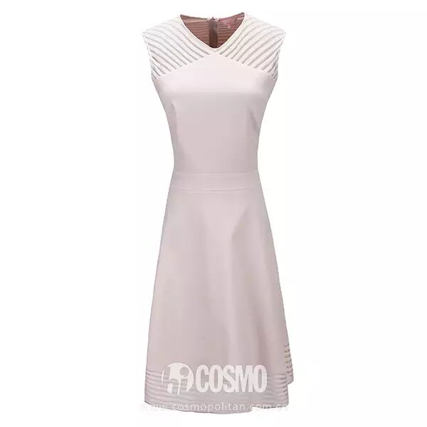 Angelababy的浅粉色亮片饰连衣裙则则偏向小女生气质一些,学院风的领口搭配胸前的排扣设计,减龄满分。