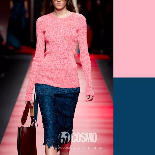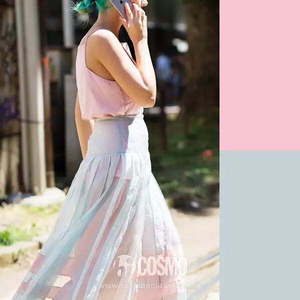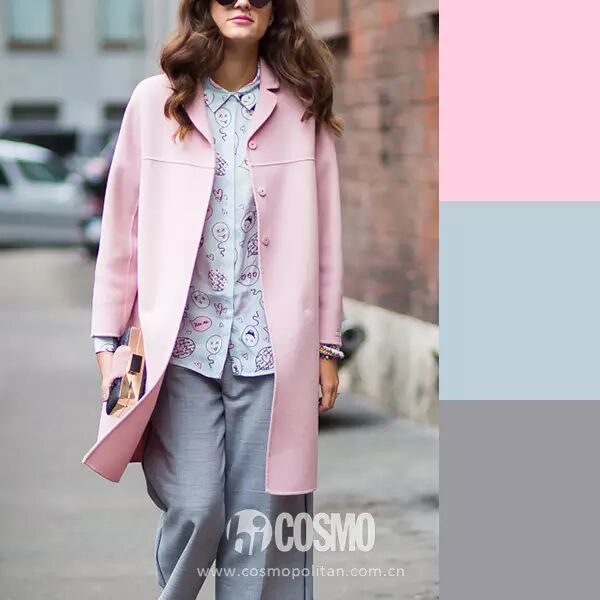 浅粉色和浅蓝色的搭配特别符合2016年度色的主题,虽然这两种颜色并不是最准确的年度色配色,但是平和舒缓的感觉正是今年时尚圈最着迷的。
