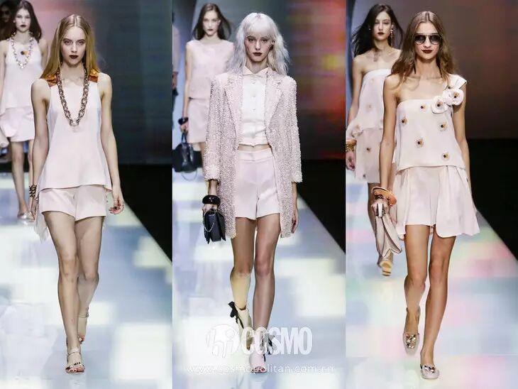 2016春夏时装周上,Emporio Armani在米兰的秀场好像一片粉色的海洋,从甜美的嫩粉色到清凉的淡粉色,69套造型中有30+套大量融入了粉色,而且这还没算用粉色做细节装饰的造型呢!虽说粉色常以娇嫩的形象示人,但在Emporio Armani的秀场上,你完全不会觉得这些粉色有任何一丝做作的感觉。